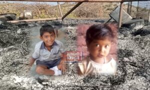 लोणखेडी गावापासून एक किमी अंतरावर टेकडीवर आजी झोपडीत आपल्या नात नातू सोबत राहत होती.मोलमजुरी करून आजी घराचा उदरनिर्वाह करत होती.दि १७ रोजी दुपारी आजी नेहमीप्रमाणे गुरांना पाणी पाजण्यासाठी बाहेर गेले यादरम्यान रेणू आणि अमोल दोन्ही चिमुकले झोपडीत असतांंना झोपडीला आग लागली.काही क्षणात आगीने रौद्ररूप धारण केले आणि या आगीत रेणू आणि अमोलचा होरपळून मृत्यू झाला.