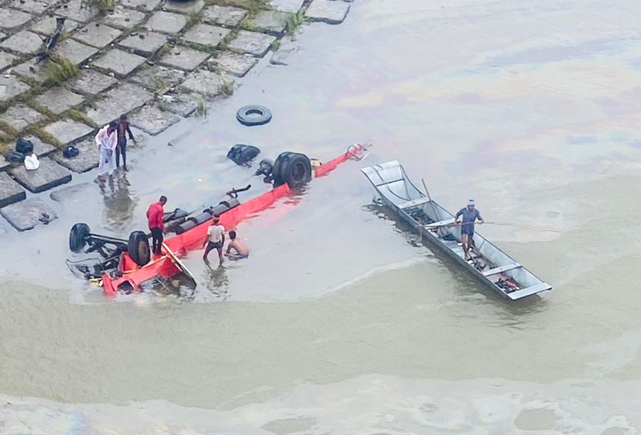 महाराष्ट्र राज्य मार्ग परिवहन महामंडळाच्या अमळनेर आगाराची इंदोर- अमळनेर बस क्रमांक एम एच 40 एन 9848 ही आज दि. 18 जुलै, 2022 रोजी सकाळी 07.30 वा. इंदोर येथुन अमळनेर कडे मार्गस्थ झाली. आज सकाळी सुमारे 10.00 ते 10.15 च्या दरम्यान मध्यप्रदेश मधील खलघाट आणि ठिगरी मधील नर्मदा नदीचे पुलावर सदर बस अपघातग्रस्त होवुन नर्मदा नदीत कोसळल्याची प्राथमिक माहिती मिळाली आहे. घटनास्थळी खरगोन व धार चे जिल्हा प्रशासन पोहोचले असुन बस क्रेन च्या सहाय्याने बाहेर काढण्यात येत असुन जखमींना उपचारासाठी जवळच्या रुग्णालयात दाखल करण्यात येवुन त्यांच्यावर उपचार सुरु आहेत, त्यांच्या प्रकृतीबाबत अद्ययावत माहिती घेणेचे काम सुरु आहे. आवश्यक ती सर्व मदत करण्याच्या हेतुने जिल्हाधिकारी जळगाव व जळगाव जिल्हा प्रशासन हे खरगोन व धार जिल्हा प्रशासनाच्या नियमित संपर्कात असून अपघातग्रस्त व्यक्तींना सर्व आवश्यक ते सहकार्य करण्याचे नियोजन करण्यात आलेले आहे.हेल्पलाईन क्रमांक घटनास्थळी मदतीसाठी 09555899091.,जळगाव जिल्हाधिकारी कार्यालय नियंत्रण कक्ष 02572223180, 02572217193 हे क्रमांक जिल्हाधिकारी जळगाव यांनी प्रसिध्द केले आहेत अशी माहिती मंत्रालय नियंत्रण कक्षाकडून दुपारी १.५० मिनिटांनी घेतलेल्या माहितीनुसार प्रसिध्दीस देण्यात आली आहे.