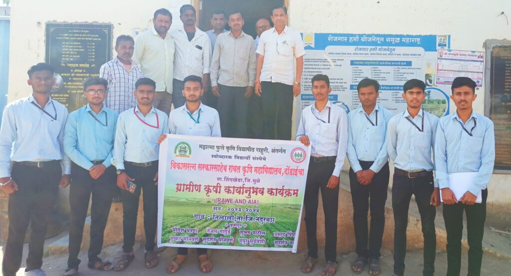 त्यांच्या समवेत सरपंच स्मिता पाटील,उपसरपंच छोटा भिल ग्रामसेवक टी. के. खरे ,कारकून गोकुळ ठाकरे यांच्यासह इतर ग्रामस्थांची भेट घेऊन या कार्यानुभव कार्यक्रमाचे उद्दिष्ट व त्यासंबंधित ग्रामस्थांशी चर्चा केली. यावेळी कृषी महाविद्यालयाचे प्राचार्य प्रा. आर. बी. राजपूत, उपप्राचार्य प्रा. आर.बी.पाटील, कार्यक्रम समन्वयक प्रा.एल. ए. गिरासे, कार्यक्रम अधिकारी प्रा.आय.पी. गिरासे व प्रा. एस. व्ही. सुरडकर यांचे मार्गदर्शन लाभले.