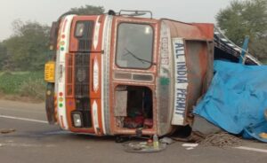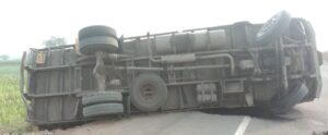 बातमी कट्टा:- सुरत नागपूर महामार्ग क्र ६ वर केमिकलने भरलेली टाकी घेऊन जाणाऱ्या भरधाव ट्रालाचा तोल गेल्याने ट्राला पलटी झाल्याची घटना आज दि २५ रोजी पहाटेच्या सुमारास घडली आहे.या अपघातात ट्रालासह केमिकलचे मोठ्या प्रमाणात नुकसान झाले आहे.