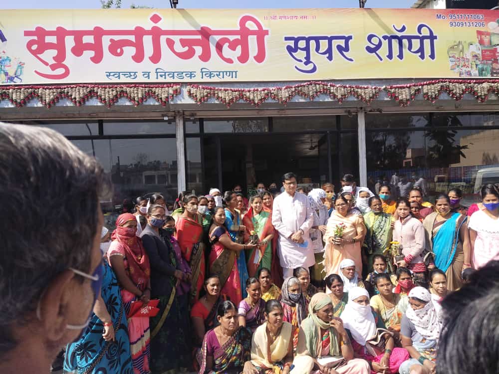 या अभियानामधून ‘घुलेवाडी’ गावात दहा महिलांनी एकत्र येऊन बचतगट स्थापन केले. बघता बघता गावात 30 स्वयंसहायता गटांची स्थापना झाली.या गटांचे मिळून ‘रुक्मिणी महिला ग्रामसंघा’ची स्थापना करण्यात आली. ‘ग्रामसंघा’च्या माध्यमातून गावातील वेगवेगळ्या गटातील महिला एकत्रित आल्या आणि विचारांची देवाण-घेवाण झाली.कोरोना कालावधीत सर्व काही बंद होते ; परंतु जीवनावश्यक वस्तू ची सुविधा चालू होती. हे लक्षात घेऊन ‘ग्रामसंघा’तील 6 महिलांनी पुढे येत ‘सुमनांजली सुपर शॉपिंग मॉल’ उभारण्याचा निर्णय घेतला. महिलांच्या या व्यवसायाला ‘उमेद’ अभियानातून पाठबळ मिळालं. ‘उमेद’ बरोबर केलेल्या करारामुळे एचडीएफसी बँकेने सुपर शॉपीसाठी वित्त पुरवठा केला. तर काही भांडवल बचतगटांतील महिलांनी स्वत: उभारले. राज्याचे महसूलमंत्री बाळासाहेब थोरात यांच्या हस्ते विजयादशमीच्या दिवशी 15 ऑक्टोबर, 2021 रोजी शॉपींग मॉलचे उद्घाटन करण्यात आले.