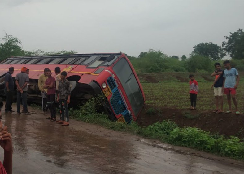 बातमी कट्टा:- रस्त्यावर चालत असतांना बसचा तोल गेल्याने रस्त्याच्या बाजूला खड्ड्यात जाऊन महामंडळाची बस एकाबाजूने उलटल्याची घटना काल दि 25 रोजी दुपारी 3:30 वाजेच्या सुमारास घडली सुदैवाने यात जिवीतहानी टळली तर चार जण जखमी झाले आहे.