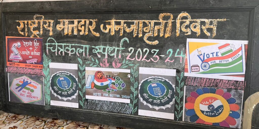 चित्रकला स्पर्धेतून विद्यार्थ्यांनी केली मतदार जनजागृती, तहसीलदार महेंद्र माळी यांची उपस्थिती