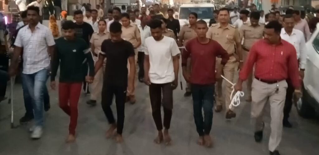 तलवार आणि रॉडने हल्ला करणाऱ्या हल्लेखोरांची पोलिसांनी काढली धिंड…