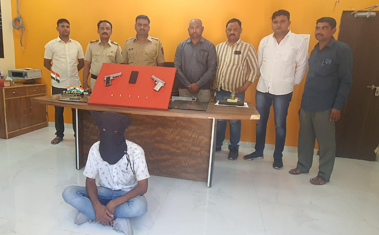 पोलीसांनी त्यावे नाव विचारले असता प्रयागसिंग देवीसिंह वय 27 रा.राजपूत बस्ती मुर्जगढ ता.पोकळण जि.जैसलमेर राजस्थान असे सांगितले पोलीसांनी 40 हजार किंमतीचे दोन गवाठघ पिस्तूल 2,500 किंमतीचे जिवंत काडतुसे व 200 किंमतीचा मोबाईल जप्त करत संशयिताला ताब्यात घेतले आहे. संशयिताकडून अधिक विचारपूस करण्यात येत आहे.