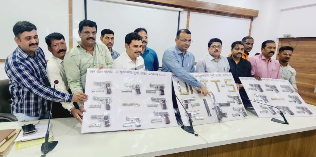 मिळालेल्या प्राथमिक माहिती नुसार ठाणे(मुंबई) येथील वागळे इस्टेट पोलीस स्टेशन येथील पाहीजे आरोपी सुरजीतसिंग उर्फ माजा हा विक्री करीता मोठ्या प्रमाणात अग्निशस्त्रसाठा घेवुन शिरपूर तालुक्यातील पळासनेर या गावी येणार असल्याची गोपणीय माहिती दि.१० रोजी गुन्हे शाखा घटक ५ चे वरिष्ठ पोलीस निरीक्षक विकास घोडके, यांना प्राप्त झाल्याने तात्काळ गुन्हे शाखा, घटक ५, वागळे, ठाणे येथील पोलीस पथक आरोपीचा शोध घेणेकामी धुळे जिल्ह्यातील पळासनेर येथे येऊन पथकाने सापळा रचला असता सदर गुन्हयातील पाहीजे आरोपीत नामे सुरजीतसिंग उर्फ माजा आवसिंग वय २७ रा. मु.उमर्टीगाव पो.बलवाडी ता. वरला जि. बडवानी,मध्यप्रदेश हा एकुण २० गावठी बनावटीचे स्टिल पिस्तूल,१ गावठी बनावटीची मशिनगन २ मॅग्झीन व २८० जिवंत काडतुसे सह पळासनेर येथे विक्री करीता आल्याने त्यास सापळा रचुन शिताफिने ताब्यात घेतले असुन वरील अग्निशस्त्र व जिवंत काडतुस असा साठा जप्त करण्यात आले आहे.त्यास मा. न्यायालयाने दि. १८ जुलै रोजी पावेतो पोलीस कस्टडी रिमांड मंजुर केली आहे.