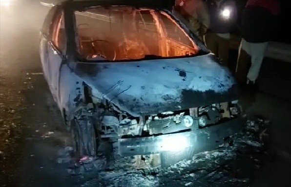 शिरपूर तालुक्यातील मुंबई- आग्रा राष्ट्रीय महामार्गावर आंबापाणीपाडा फाट्यावर सोमवारी पहाटे 4 वाजेच्या सुमारास शिरपूरकडून सेंधवाकडे जाणाऱ्या कारला अचानक भीषण आग लागल्याची माहिती पोलीसांना मिळाली.या भीषण आगीत संपूर्ण कार जळून खाक झाली होती.आगीची माहिती मिळताच पहाटेच तालुका पोलीस ठाण्याचे पोलिसांचे पथक घटनास्थळी धाव घेत पाहणी केली. मात्र वाहनाचा नंबरमालक आणि चालक बाबत माहिती मिळून शकली नाही घटनास्थळी कारच मधील कोणीही जबाबदार व्यक्ती नसल्याची माहिती तालुका पोलिसांनी दिली आहे.नेमकी कारला आग लागली की कारला आग लावली याबाबत कुठलीही माहिती मिळु शकलेली नाही.
