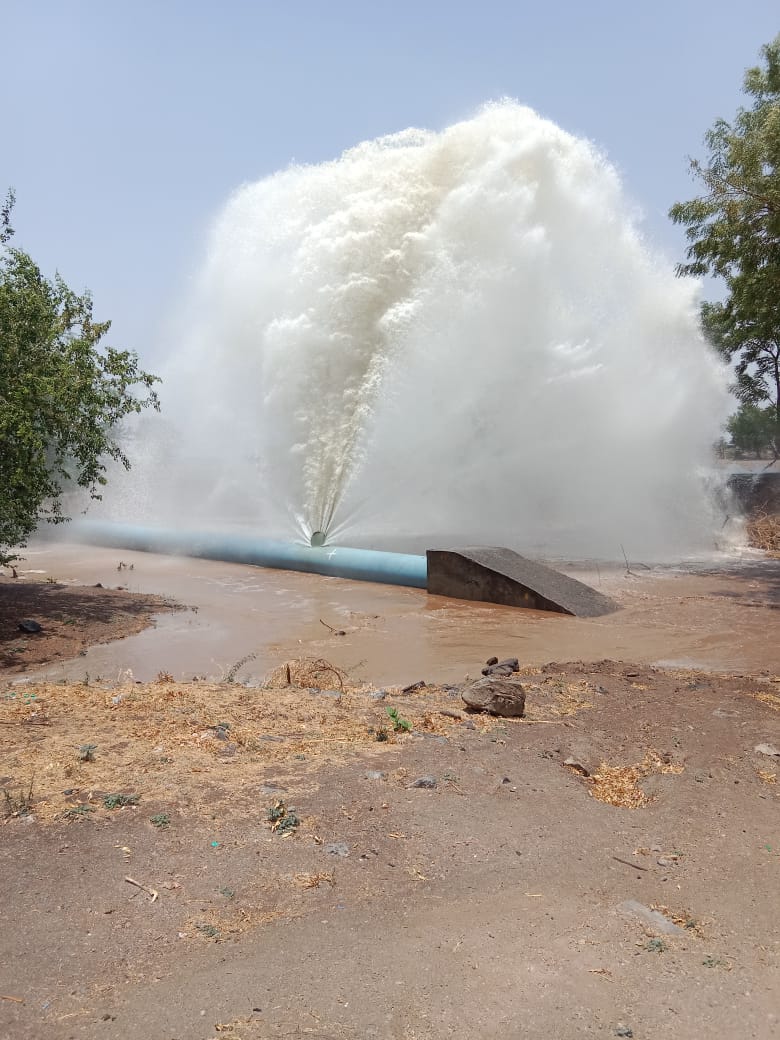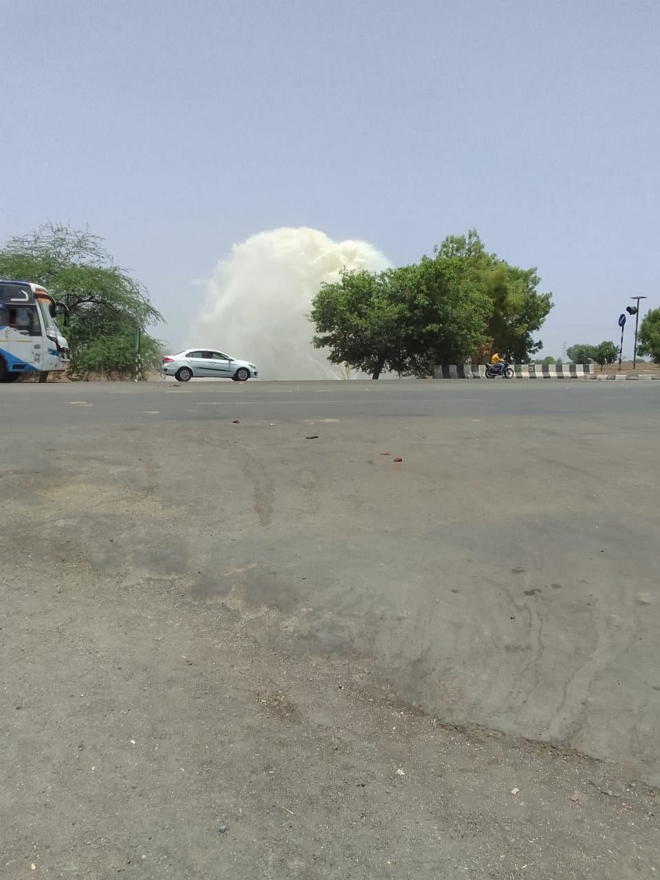 पाण्याचा फवारा ईतका मोठा होता की मुंबई आग्रा राष्ट्रीय महामार्गावरून वाहतूक करणाऱ्या नागरिकांनी ही बघण्यासाठी गर्दी केली होती.दुपारी अचानक पाईप फुटल्याने हजारो लिटर पाणी खाली वाहत होते.