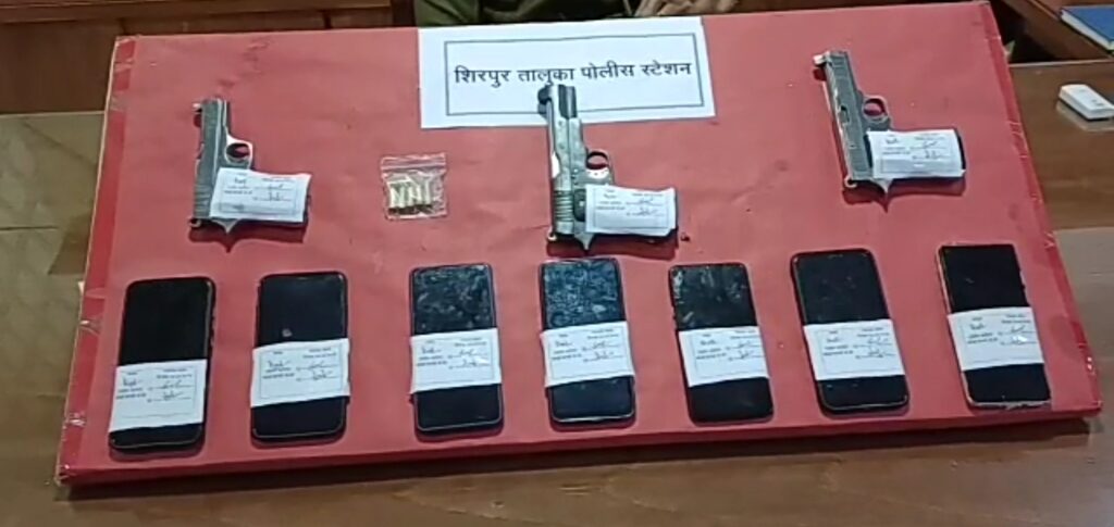 दि 12 रोजी साहाय्यक पोलीस निरीक्षक सुरेश शिरसाठ यांना गोपणीय माहिती प्राप्त मिळाली होती त्या माहितीच्या आधारे सा.पोलीस निरीक्षक सुरेश शिरसाठ,,संदिप पाटील, संदिप ठाकरे, संजय भोई,योगेश मोरे,प्रकाश भिल,मुकेश पावरा, इसरार फारूकी आदींनी शिरपूर तालुक्यातील भोईटी गावाच्यापुढे सापळा रचून थांबले यावेळी एम एच 15 सिटी 5688 क्रमांकाची चारचाकी वाहन येत असल्याचे दिसून आले.पोलीसांनी वाहन थांबविण्याचा प्रयत्न केला असता वाहन न थांबवता जोराने वाहन पळवून शिरपूर च्या दिशेने निघाले.त्या वाहनाचा पोलीसांनी पाठलाग करून थांबवली.वाहनाची झडती घेतली असता त्यात मॅगझीनसह तीन गावठी पिस्तूल व सहा जिवंत काडतूसे आणि एक अतिरिक्त मॅगझीन पोलीसांना मिळून आले.वाहनात असलेले मोहीत राम तेजवानी वय २१ वर्ष ,आकाश विलास जाधव वय २४,राज प्रल्हाद मंदोरिया वय २१, अजय जेठा बोरीस वय २९,श्रीनिवास सुरेंद्र कानडे वय २४,दर्शन चमनलाल सिंधी वय २१ सर्व राहणार नाशिक आदींना पोलीसांना ताब्यात घेतले.पोलीसांनी तीन पिस्तूल, काडतूसे व चारचाकी वाहन असा एकुण ७ लाख ६६ हजारांचा मुद्देमाल जप्त करण्यात आला आहे.