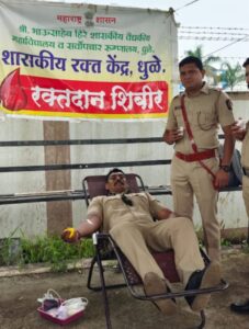 पोलीस अधिक्षक प्रवीण पाटील अप्पर पोलीस अधीक्षक प्रशांत बच्छाव पोलीस उपअधीक्षक कातकाडे पो नि हेमंत पाटील यांच्या मार्गदर्शनाखाली स्वतंत्राच्या अमृत महोत्सव निमित्त धुळे जिल्ह्यातील मोहाडी नगर पोलीस स्टेशन येथे रक्तदान शिबिरचे आयोजन करण्यात आले होते. त्यात मोहाडी पोलीस स्टेशनचे प्रभारी सपोनि भूषण कोते, पोसई सुर्यवंशी, पोसई राऊत, पोसई कौठूळे,पो हेकॉ काळे ,पोहेकॉ थोरात ,पोना कोठावदे पोना पाटील, पोकॉ गणेश भामरे , पॉको जितेंद्र वाघ ,पॉकॉ समीर पाटील ,पोकॉ राहुल गुंजाळ, पोकॉ वाघ असे सर्व मोहाडी पोलीस अधिकारी कर्मचारी यांच्यासक्ष परिसरातील नागरिकांनी सभाग घेत 75 रक्तदात्यांनी रक्तदान केले आहे.