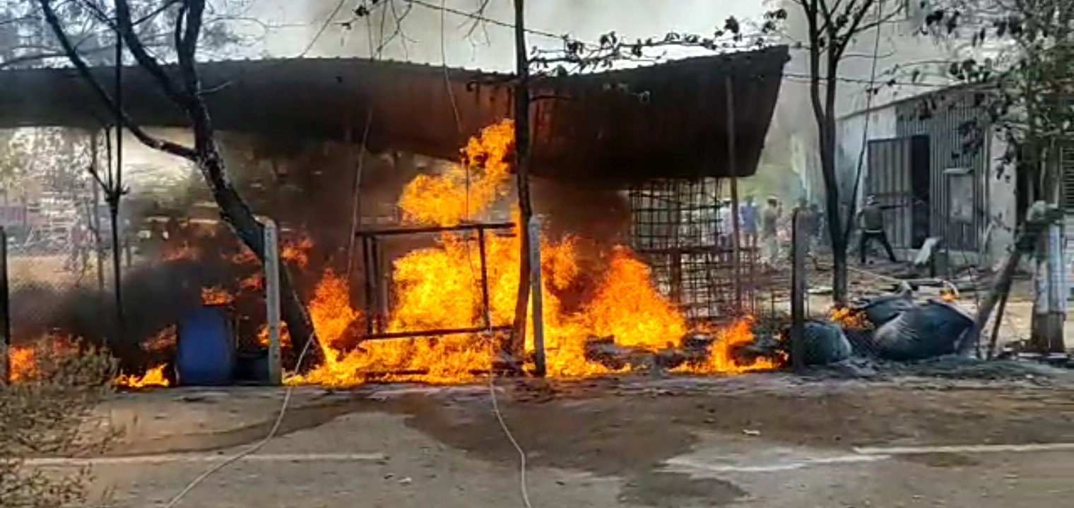 मिळालेल्या प्राथमिक माहिती नुसार मुंबई -आग्रा राष्ट्रीय महामार्ग क्र 3 वरील शिरपूर तालुका पोलीस स्टेशन(सांगवी) येथे पोलीस स्टेशन बाहेर असलेल्या गोदामाला आज दि 18 रोजी दुपारच्या सुमारास अचानक भीषण आग लागली आहे. पोलीसांनी कारवाईत जप्त केलेला मुद्देमाल या गोदामा मध्ये ठेवण्यात येत असतो.हा संपूर्ण मुद्देमाल जळून खाक झाला आहे.पोलीसांनी अनेक कारवाई मध्ये जप्त करण्यात आलेले मोटरसायकली,वाहने,स्पिरीट, गांजासह ईतर मुद्देमाल यात जळून खाक झाला आहे.या आगीचे कारण मात्र अद्याप समजू शकलेले नाही.यात लाखोंचे नुकसान झाल्याचा अंदाज व्यक्त करण्यात येत आहे. शिरपूर येथील दोन अग्निशमन बंब घटनास्थळी दाखल झाले असून आग विझविण्यात येत आहे.
