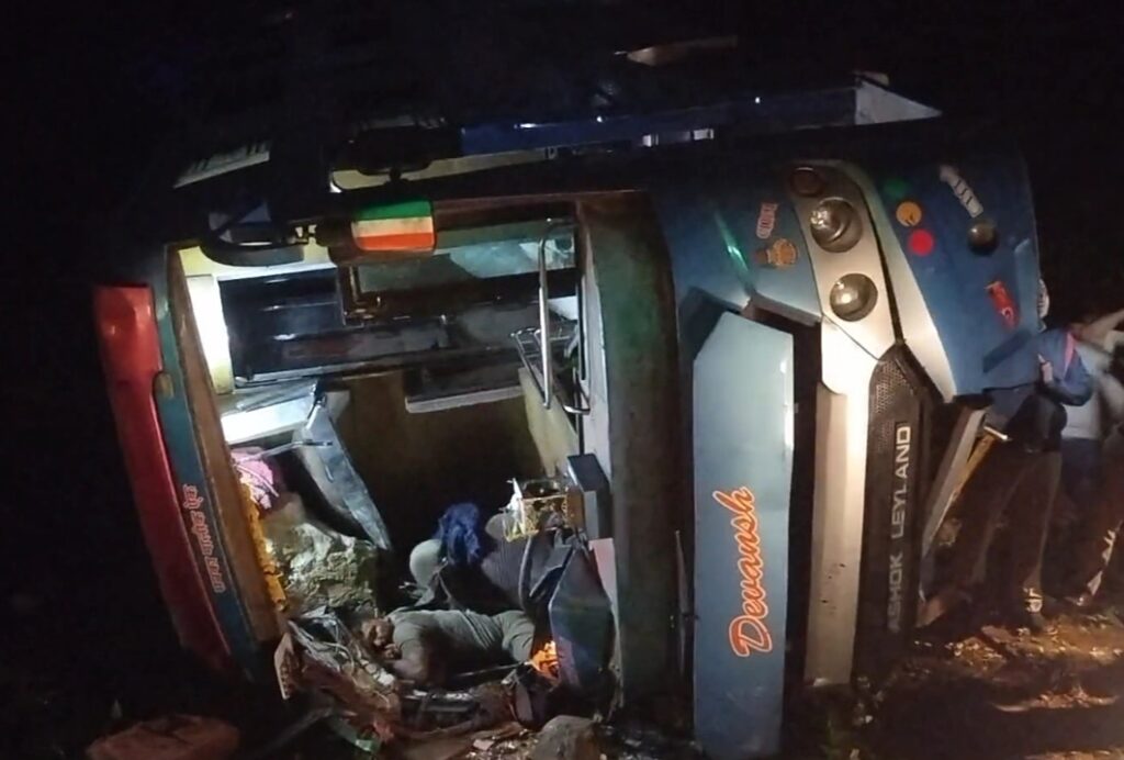 बातमी कट्टा:- प्रवासी वाहतूक करणाऱ्या खासगी बसचा घाटात भीषण अपघात झाल्याची दुर्दैवी घटना रात्रीच्या सुमारास घडली आहे.मुसळधार पाऊसात बस घाटात पलटी झाल्याने मध्यरात्री मदतकार्य करण्यासाठी मोठी अडचण निर्माण झाली होती.या अपघातात चालकासह 18 महिन्याच्या चिमुरडीचा मृत्यू झाला आहे तर 3 जणांची प्रकृती चिंताजनक आहे.