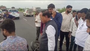 बातमी कट्टा:- मुंबई -आग्रा राष्ट्रीय महामार्ग क्रमांक तीन वरील बाबळे फाटा जवळ अज्ञात अवजड वाहनाने मोटरसायकल मागून धडक दिल्याने अपघात झाला .या अपघातात एका 42 वर्षीय तरुणाचा जागीच मृत्यू तर दुसरा तरुण जखमी झाला आहे.चेतनकुमार शिवाजी पाटील रा.पित्रेश्वर शिरपूर असे मयत तरुणाचे नाव आहे.घटनास्थळा वरून माजी खासदार डॉ सुभाष भामरे जात असताना त्यांनी जखमींची विचारपूस करीत तपासणी केली.