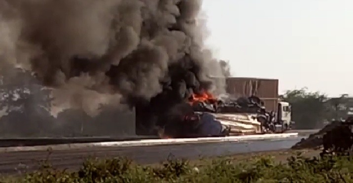 मिळालेल्या प्राथमिक माहिती नुसार मुंबई आग्रा राष्ट्रीय महामार्गावरील पळासनेर गावाजवळ आज दि 1 रोजी दुपारी 4 वाजेच्या सुमारास मध्यप्रदेश कडून शिरपूरच्या दिशेने भरधाव टँकरने ट्रकला जोरदार धडक दिल्याची घटना घडली. या धडके नंतर टँकर पलटी होऊन टँकरचा स्फोट झाला यावेळी टँकरने आगीचे रौद्ररूप धारण केले. आगीत संपूर्ण टँकर जळून खाक झाले आहे.प्राथमिक माहिती नुसार या टँकरमधील चालक टँकरमध्ये अडकला असून या आगीत त्याचा होरपळून मृत्यू झाल्याचे सांगितले जात आहे. सदर टँकर मध्ये केमिकलयुक्त पदार्थ असल्या कारणाने टँकरचा स्फोट झाला या स्फोटाचा मोठमोठ्याने आवाज आल्याने नागरिक भयभीत झाले आहेत.या आगीने रौद्ररूप धारण केले असून यात संपूर्ण टँकर जळून खाक झाले आहे.गेल्या एक तासापासून आग सुरुच आहे.घटनास्थळी नागरिकांसह पोलीस प्रशासन दाखल झाले आहे.