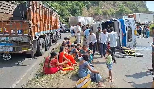 बातमी कट्टा:- मुंबई आग्रा राष्ट्रीय महामार्ग क्रमांक तीनवरील बिजासण घाटात मध्यप्रदेश परिवहन मंडळाच्या बसचा भीषण अपघात झाल्याची घटना आज दि 1 रोजी सकाळी 10:30 वाजेच्या सुमारास घडली.ब्रेकफेल ट्रकने बसला मागून धडक दिल्याने बस रस्त्यावर पलटली असून या अपघातात दोन जणांचा मृत्यू तर 30 हुन अधिक प्रवासी जखमी झाले आहेत.