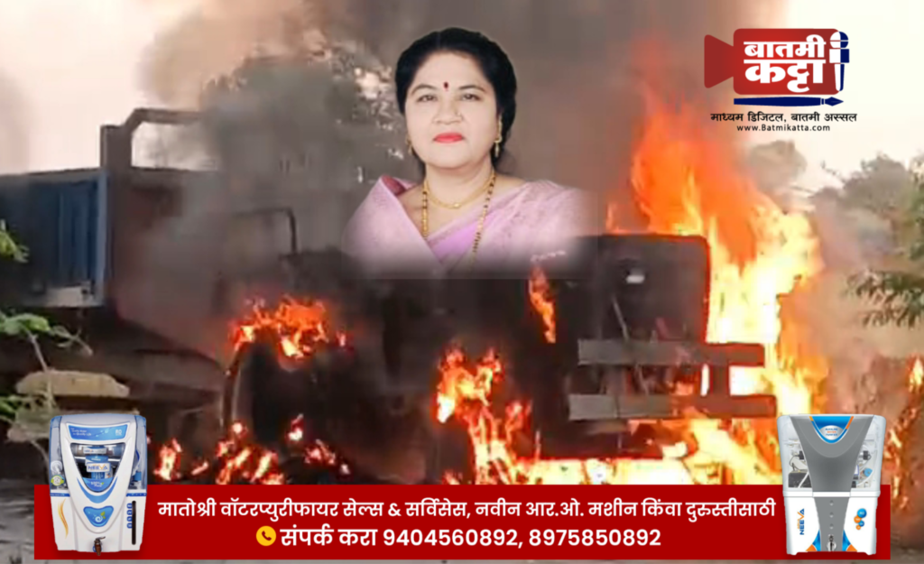 बातमी कट्टा:-वाळू वाहतूक करणाऱ्या ट्रॅक्टरने महिलेला चिरडल्याची घटना काल दि 21 रोजी दुपारच्या सुमारास घडली आहे. अपघातात महिलेचा मृत्यू झाला.या घटनेनंतर संतप्त जमावाने ते ट्रॅक्टर पेटवून टाकले.