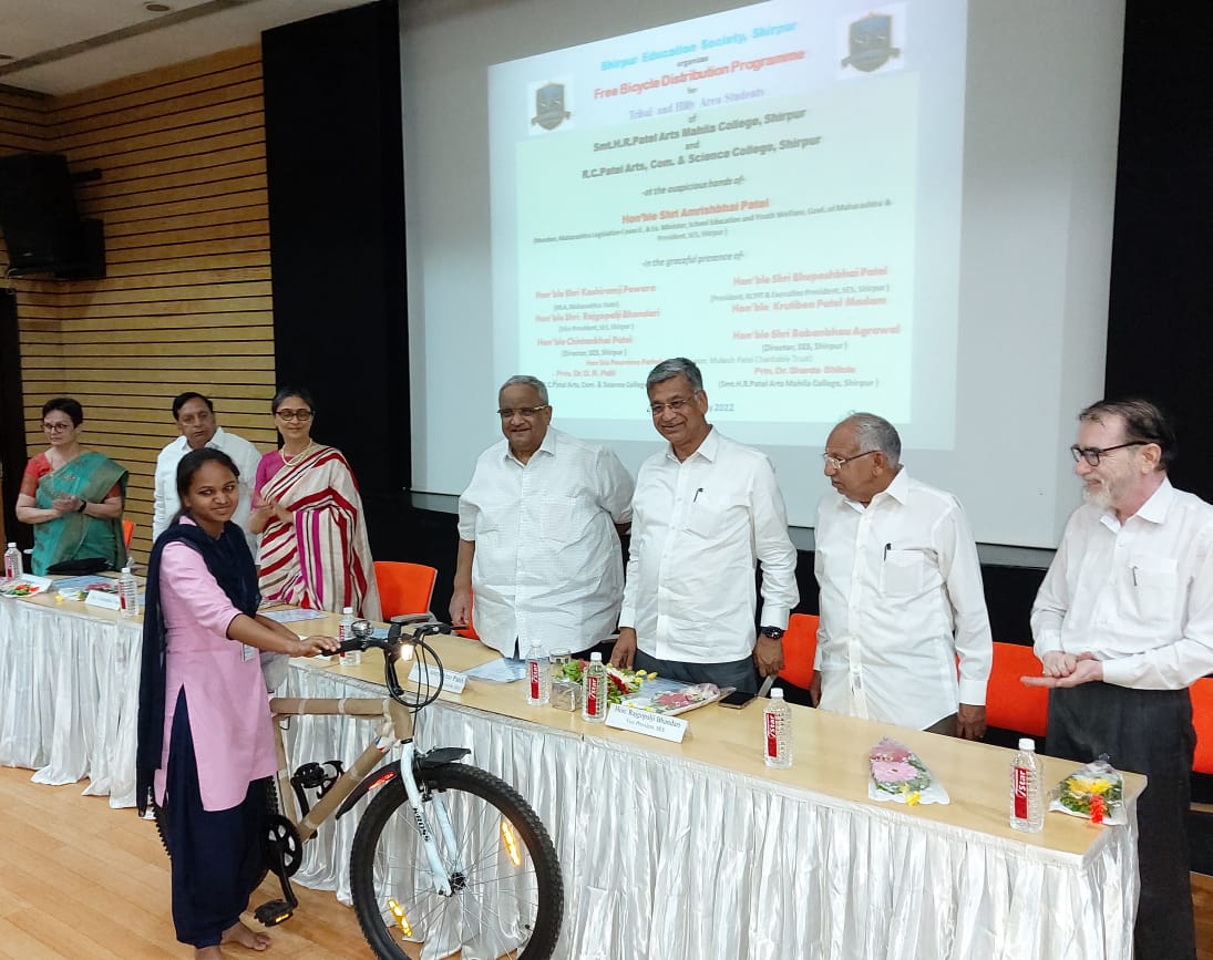 बातमी कट्टा:- शिरपूर येथील एच. आर. पटेल महिला महाविद्यालयाच्या 30 आदिवासी विद्यार्थिनी व आर. सी. पटेल सिनिअर कॉलेजच्या 30 आदिवासी विद्यार्थिनी असे आदिवासी व डोंगराळ भागातील एकूण 60 विद्यार्थिनींना संस्थेच्या वतीने मोफत सायकल वाटप समारंभ गुरुवारी 12 मे 2022 रोजी सकाळी 11.30 वाजता एस.एम.पटेल ऑडिटोरिअम हॉल येथे माजी शालेय शिक्षण, क्रीडा व युवक कल्याण मंत्री आमदार अमरिशभाई पटेल यांच्या हस्ते संपन्न झाला.