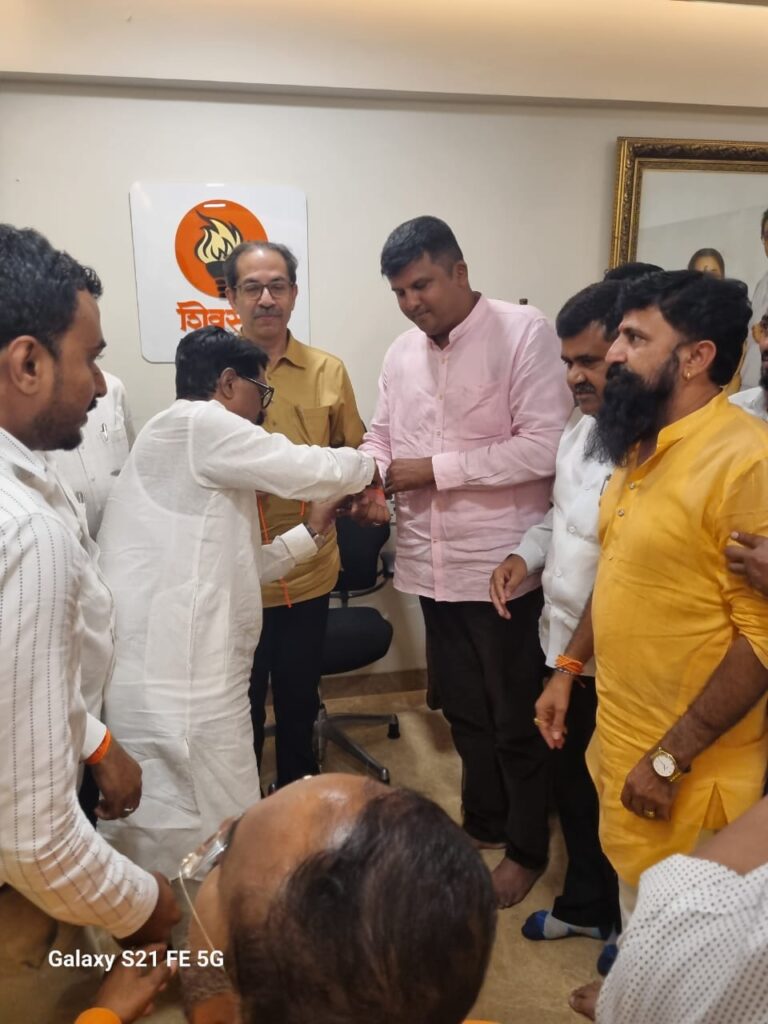 आज दिनांक १६ सप्टेंबर रोजी शिवसेना(उबाठा) पक्षप्रमुख उद्धव बाळासाहेब ठाकरे यांच्या हस्ते मुंबई येथील मातोश्री येथे शिवबंधन बांधून धुळे जिल्ह्यातील शिरपूर तालुक्यातील राष्ट्रवादी युवक काँग्रेस तालुकाध्यक्ष युवराज पाटील,राष्ट्रवादी कांग्रेस पार्टीचे माजी सरचिटणीस नितीन निकम,राष्ट्रवादीचे शरद पाटील यांनी शिवसेना (उबाठा) पक्षात जाहीर प्रवेश झाला.याप्रसंगी माजी मंत्री व शिवसेना नेते सुभाष देसाई,शिवसेना नेते अरविंद सावंत, धुळे जिल्हा संपर्कप्रमुख मा.अशोक धात्रक, नंदुरबार जिल्हा संपर्कप्रमुख शरद पाटील, उत्तर महाराष्ट्र महिला आघाडी संपर्क प्रमुख शुभांगी पाटील,सह संपर्कप्रमुख हिलाल अण्णा माळी, जिल्हाप्रमुख हेमंत साळुंखे, जिल्हाप्रमुख अतुल सोनवणे,माजी महापौर भगवान करंकाळ,शिरपूर विधानसभा संपर्कप्रमुख रवींद्र धनावडे, उपजिल्हाप्रमुख भरतसिंग राजपूत, युवती सेना विस्तारक प्रियांका जोशी व जिल्ह्यातील शिवसैनिक यांच्या उपस्थितीत प्रवेश सोहळा संपन्न झाला.