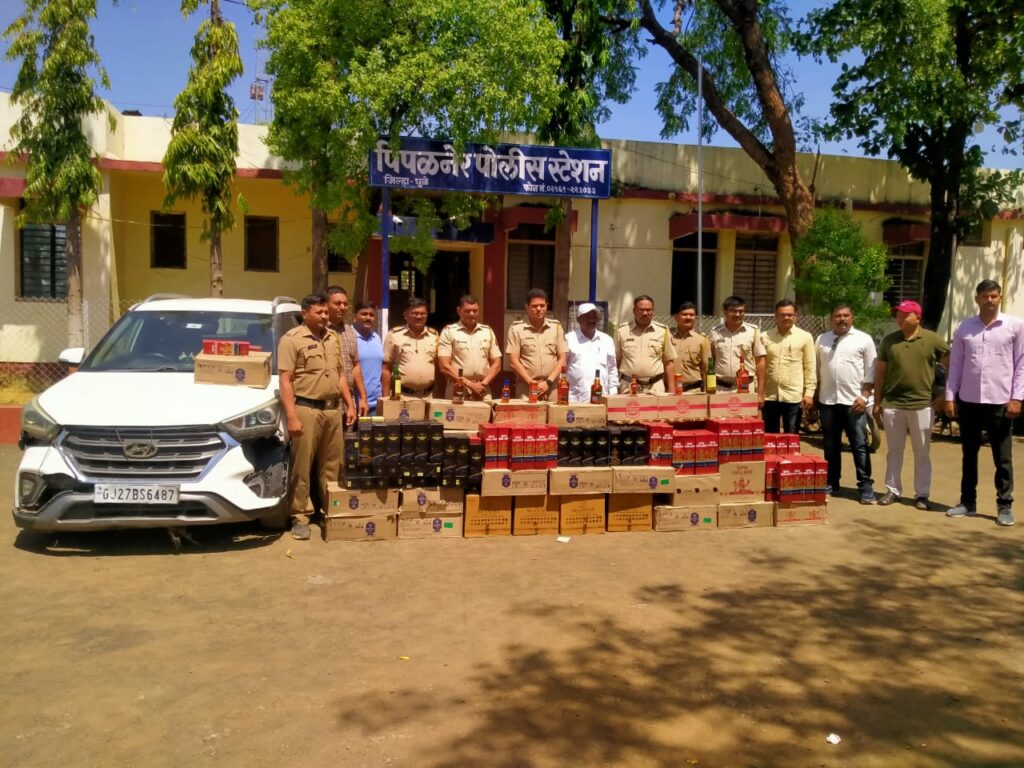 पोलीस अधिक्षक संजय बारकुंड यांनी मासिक गुन्हे आढावा बैठकी दरम्यान अवैध धंदे व तसेच आंतरराज्य व आंतर जिल्हा अवैध दारु तष्करीवर कारवाई बाबत सुचना करण्यात आल्या होत्या.दि 9 रोजी पिंपळनेर पोलीस स्टेशनचे सा.पोलीस निरीक्षक सचिन साळुंखे यांंना गोपणीय माहिती प्राप्त झाली होती.त्या माहितीच्या आधारे सा.पोलीस निरीक्षक सचिन साळुंखे व त्यांच्या पथकाने 9 रोजी रात्री 8:30 वाजेच्या सुमारास आंतरराज्य सिमा भागात पेट्रोलींग करत असतांना नवापूर रोडवर जि.जे 27 बीएस 6487 क्रमांकाची क्रेटा कार संशयितरित्या जात असल्याचे समजले पोलीसांनी क्रेटा कारचा पाठलाग केला असता जगंलाजवळ चालकाने क्रेटा कार उभी करुन जंगलात पळून गेला.पोलीसांनी कारची तपासणी केली असता त्यात देशी विदेशी कंपनीची दारु मिळुन आली.पिंपळनेर पोलीसांनी दारुसह 11 लाख 72 हजारांचा मुद्देमाल जप्त करत गुन्हा दाखल करण्यात आला आहे.