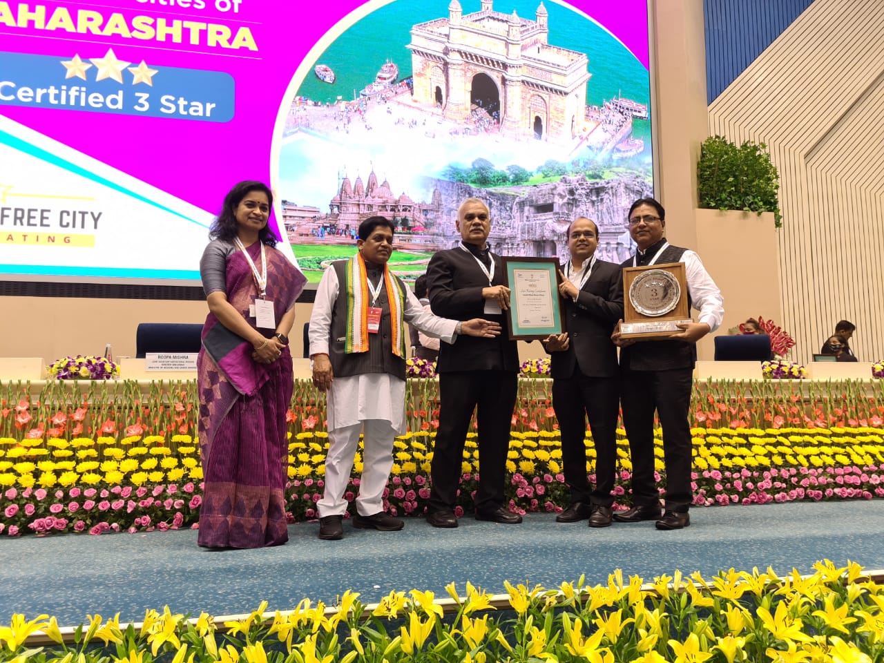 सदर बहुमान केंद्र शासनाच्या गृहनिर्माण व शहरी विकास मंत्रालयातर्फे सेक्रेटरी दुर्गाशंकर मिश्रा व जॉईंट सेक्रेटरी रूपा मिश्रा यांच्या हस्ते मुख्याधिकारी तुषार नेरकर, प्रशासकीय अधिकारी संजय हासवाणी यांना देऊन गौरविण्यात आले.