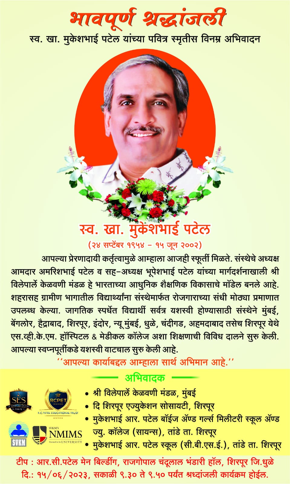 स्व. खा. मुकेशभाई पटेल यांना स्मृतीदिना निमित्त अभिवादन